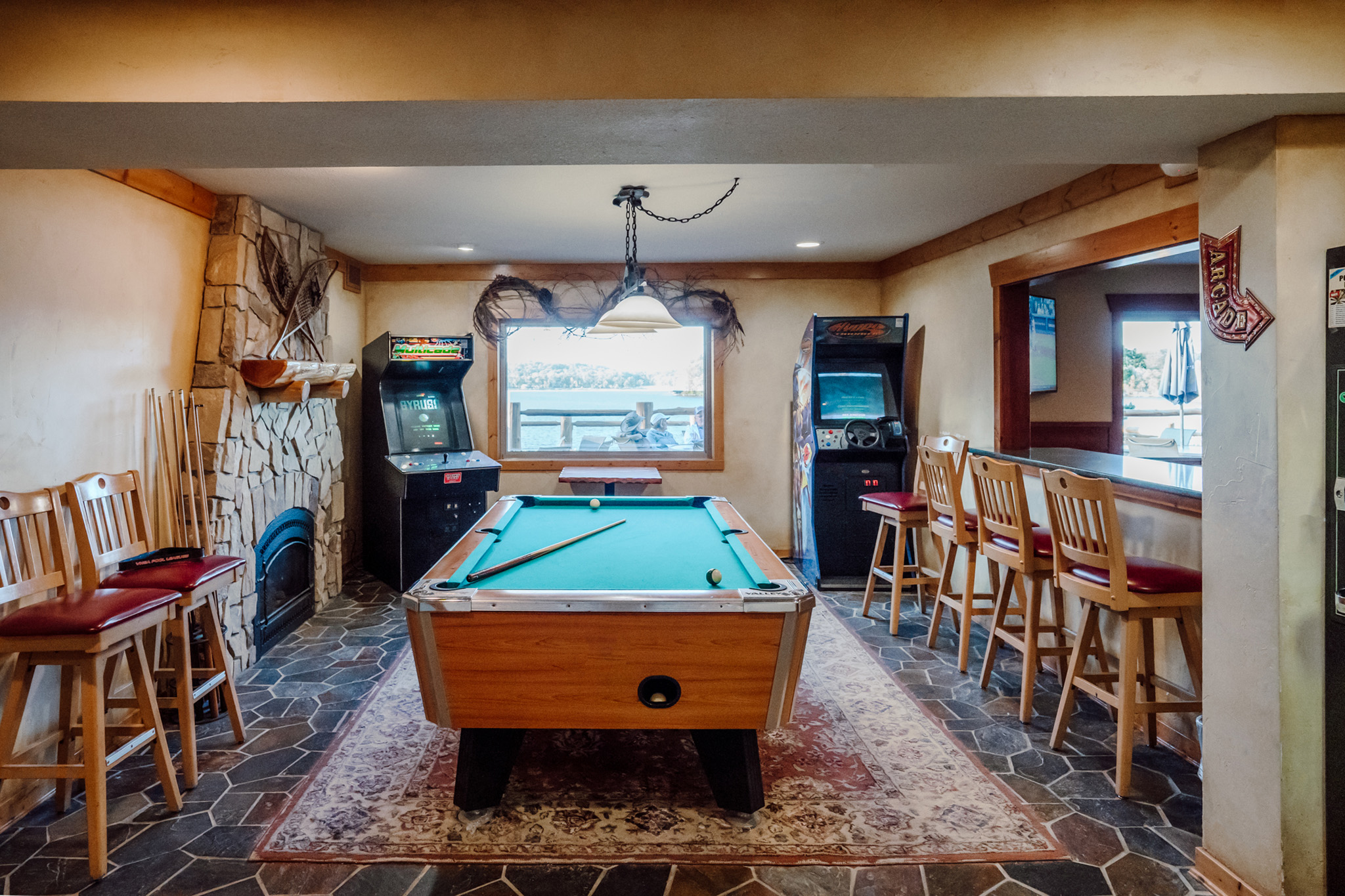 There’s an airy restaurant and a casual sports bar, as well as an indoor pool, a hot tub, a sauna and a gym. Other amenities include a boat dock, a deck with lake views, and walking trails, plus activities such as fishing, kayaking and biking. Minimum-stay rules may apply.