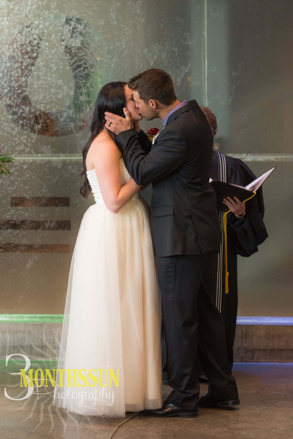 We offer space for indoor and outdoor wedding ceremonies, room for seated receptions for up to 160 guests, or strolling receptions for 160+ guests, and a sparkling 24-foot water wall as a backdrop for your first dance.